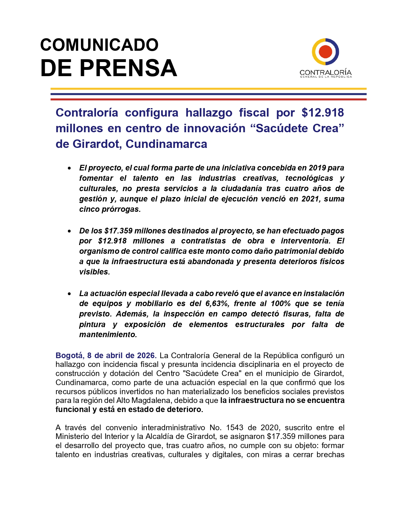 ๐‡๐š๐ฅ๐ฅ๐š๐ณ๐ ๐จ ๐Ÿ๐ข๐ฌ๐œ๐š๐ฅ ๐ฉ๐จ๐ซ $๐Ÿ๐Ÿโ€ง๐Ÿ—๐Ÿ๐Ÿ– ๐ฆ๐ข๐ฅ๐ฅ๐จ๐ง๐ž๐ฌ ๐ž๐ง ๐œ๐ž๐ง๐ญ๐ซ๐จ ๐๐ž ๐ข๐ง๐ง๐จ๐ฏ๐š๐œ๐ข๐จฬ๐ง โ€œ๐’๐š๐œ๐ฎฬ๐๐ž๐ญ๐ž ๐‚๐ซ๐ž๐šโ€ ๐๐ž ๐†๐ข๐ซ๐š๐ซ๐๐จ๐ญ, ๐‚๐ฎ๐ง๐๐ข๐ง๐š๐ฆ๐š๐ซ๐œ๐š